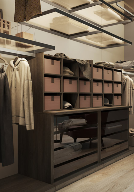 Infinity Mat è la nuovissima collezione di cabine armadio a cremagliera a muro, con accostamenti millimetrici dei pannelli e flessibilità totale nel rimodulare il layout generale, spostando con estrema semplicità i ripiani e tutta l’accessoristica lungo la cremagliera.